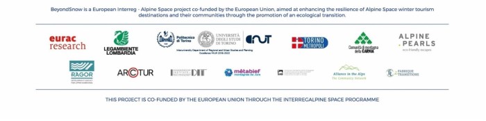BeyondSnow ist ein Interreg-Alpenraum-Projekt, das von der Europäischen Union kofinanziert wird. Es zielt darauf ab, die Abhängigkeit der Wintertourismusdestinationen im Alpenraum vom Schnee zu verringern, ihre Resilienz gegenüber dem Klimawandel zu stärken und die Rentabilität für die Einwohner und ihre Attraktivität für Touristen zu erhalten bzw. zu steigern.